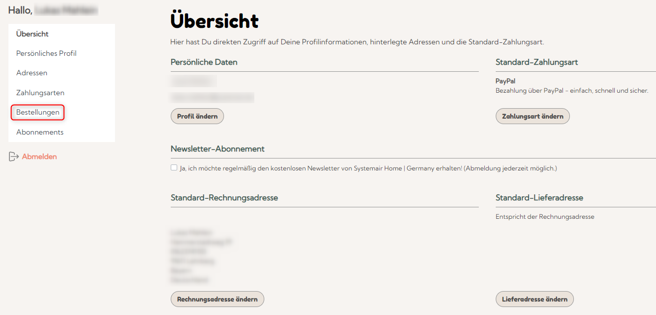 You can change your delivery address at any time in the "Customer area" under "Overview". Click on the "Change delivery address" button under "Standard delivery address", enter the new data in the form under your current delivery address and click on "Save address".